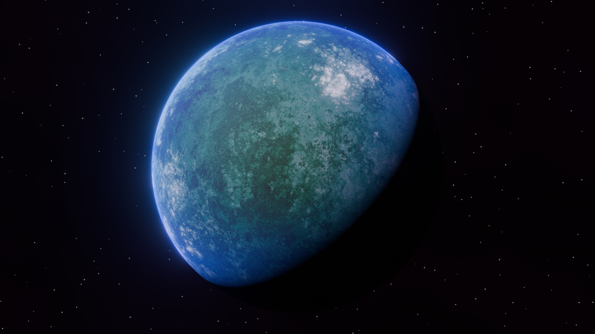 This pair planet, which was created as a test for the procedural textures. The textures were created using Blender's procedural texture system, which allows for a high level of detail and realism without the need for UV mapping or image textures.