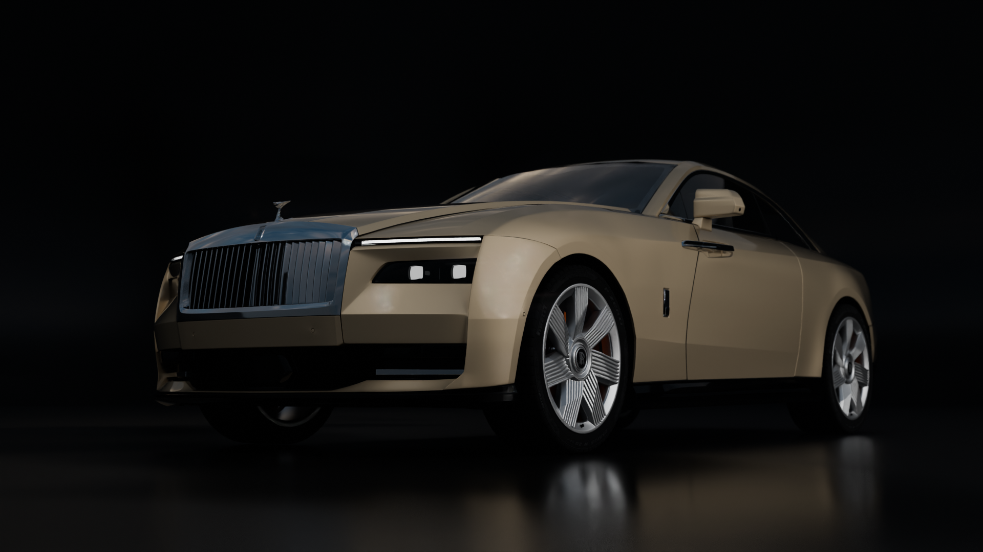 A highly detailed 3D model of a Rolls Royce Spectre created in Blender.